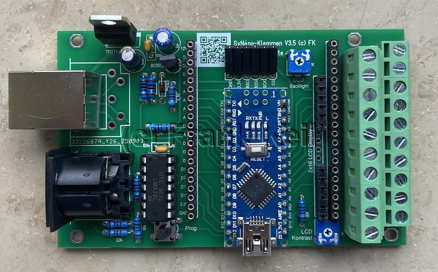 Die Buchsenleiste ganz rechts ist direkt mit den Schraubklemmen verbunden. Solange keine Erweiterungsplatine aufgesteckt wurde, ist beides allerdings ohne Funktion.