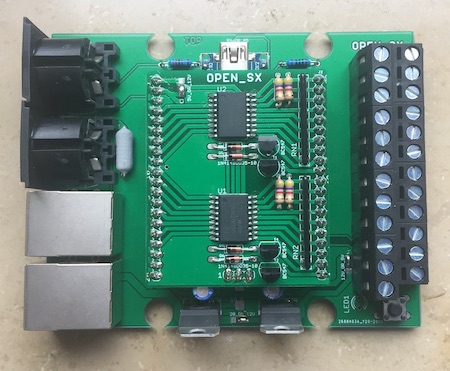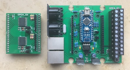 An den Signaldecoder können entweder vier Hauptsignale oder zwei Hauptsignale mit Vorsignalen angeschlossen werden. Zu diesem Zweck wird die open-sx Basisplatine mit einer Erweiterung zum Aufstecken benötigt. Die kleine Erweiterung besitzt zwei ULN2803 IC's als Led-Treiber sowie vier Transistoren um bei den Ausfahrsignalen jeweils die zweite rote Led zu schalten. Beides wurde von Andreas designt. Bei der Verwendung mit Vorsignalen kann dies sowohl einzeln stehen oder sich am Mast eines Hauptsignals befinden. In diesem Fall kann das Vorsignal einem beliebigen Hauptsignal zugeordnet werden.